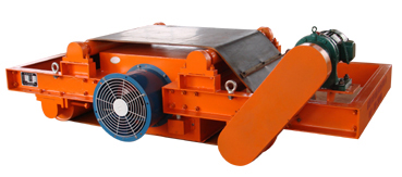 RCDC系列風冷自卸式電磁除鐵器,是在RCDA系列風冷懸掛式電磁除鐵器的基礎上增加了驅動電機、滾筒、帶刮板的卸鐵膠帶等組成的卸鐵機構。在工作過程中卸鐵機構自動將卸鐵皮帶上吸附的鐵磁性物質拋到除鐵器以外的集鐵箱內,無需停電人工清理,實現了除鐵自動化。