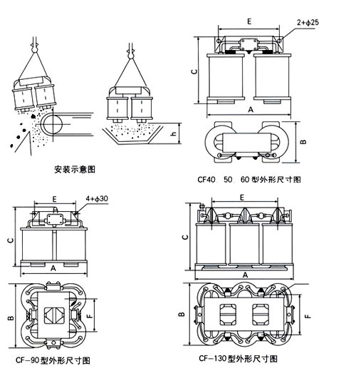 CF、CFl系列懸掛式電磁除鐵器,是目前使用量較多的除鐵設備,一直以操作方便,性能穩定可靠,價格合理,維修率低,深得用戶的依賴,全封閉的多工作磁極磁路結構,是惡劣工作環境中除鐵的常用設備。可與RCDB干式圓盤電磁除鐵器通用。該系列產品由于采用計算機輔助設計優化改進了產品結構,其技術參數達到了國外同類產品的先進水平。